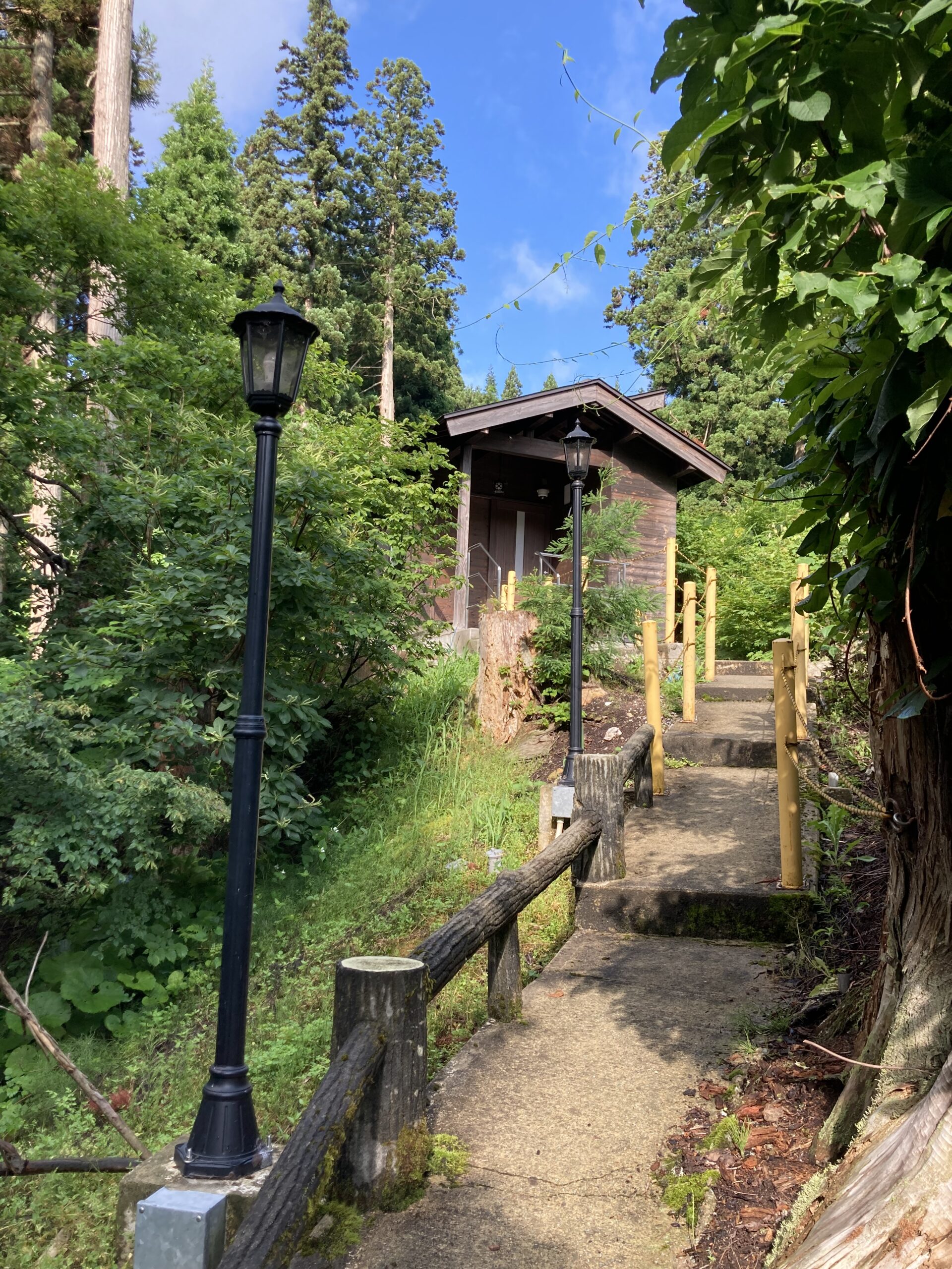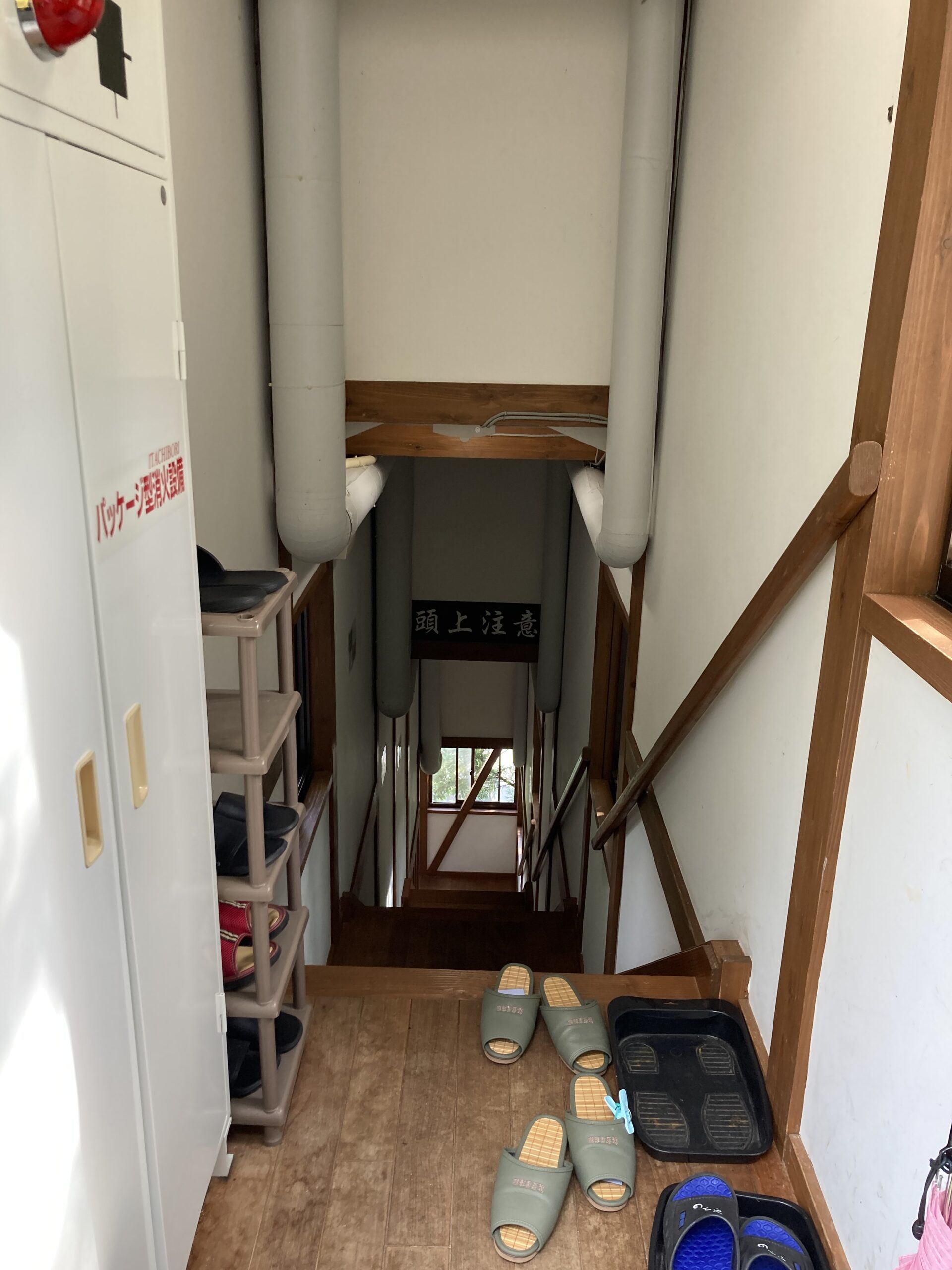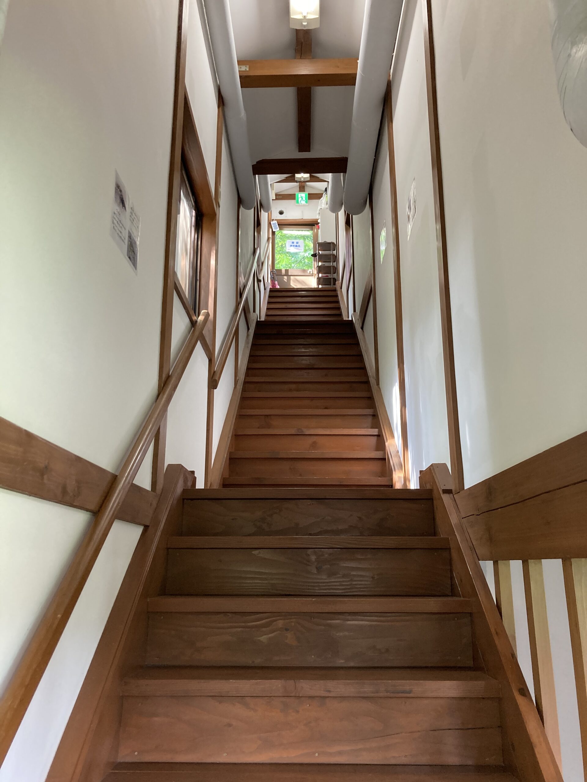 階段を上って登って、外が見えたところで外履きのサンダルに履き替えて、外の道を進みます。なるほど、ここが冬には雪がつもって行けなくなるわけですね。