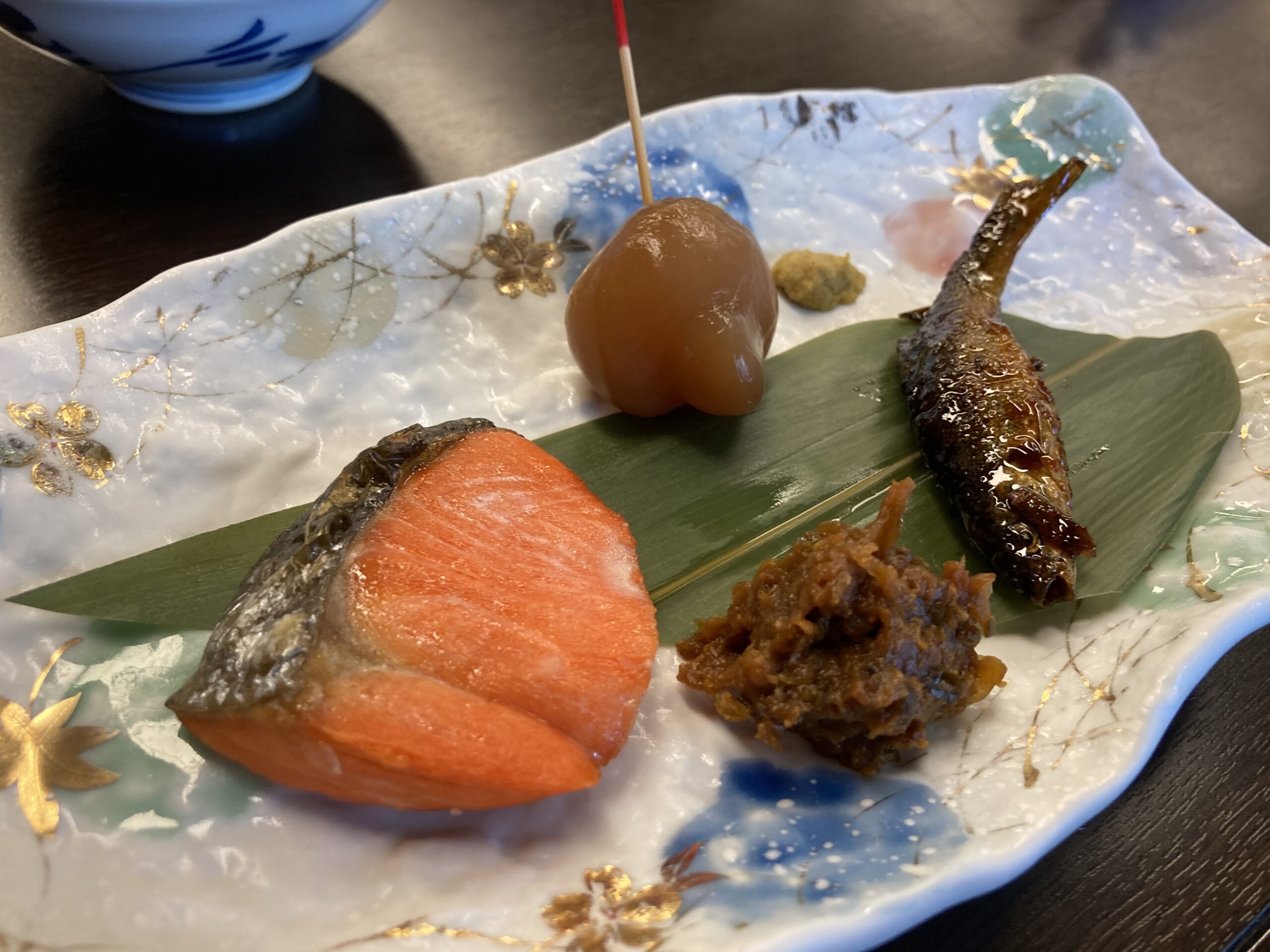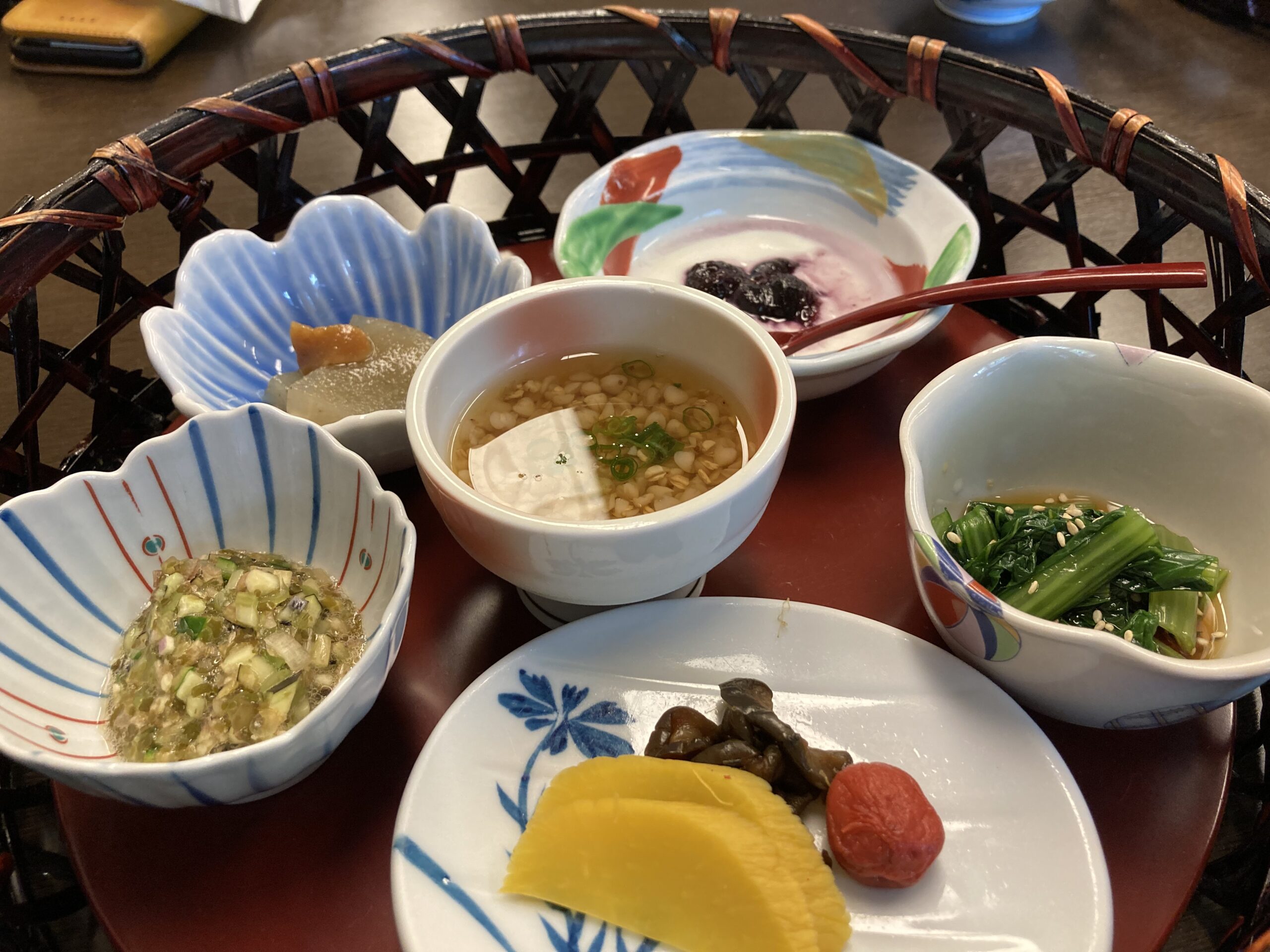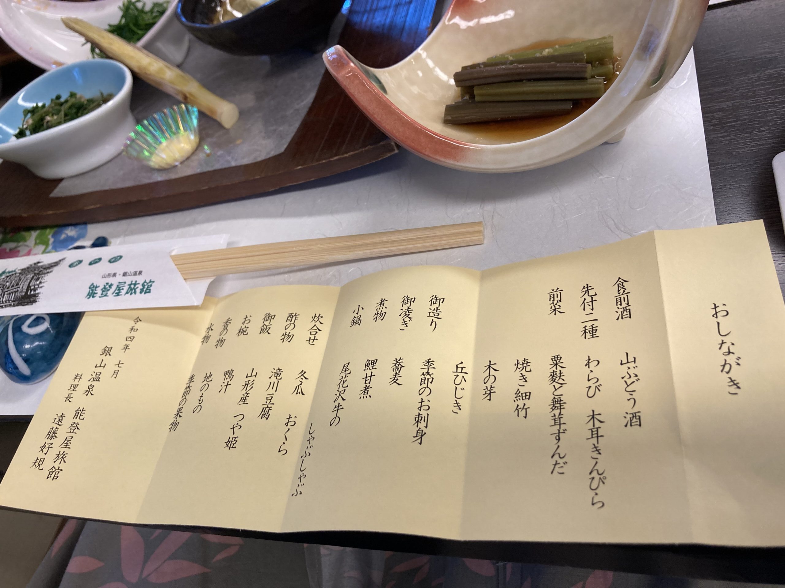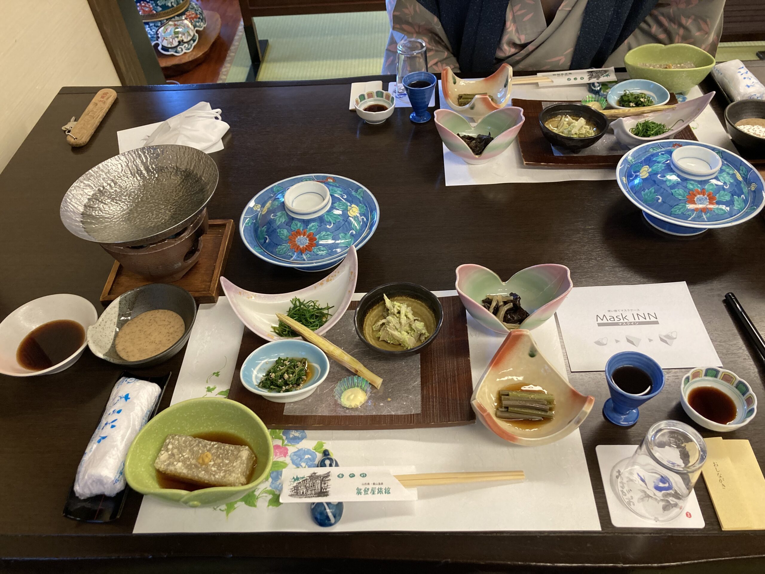 こちらのご飯も非常においしいです。前日の宿の食事は創作料理も多いと感じましたが、能登屋はより元祖和食という感じがします。鯉の刺身も鯉の煮つけをぺろりと食べてしまいました。鯉はたまに一口食べて鯉の独特の香りにもうこれ以上食べられない!っていうこともあります。こちらは美味しく頂きました。そして、山菜を活かした料理が本当においしくて!感動しました。
