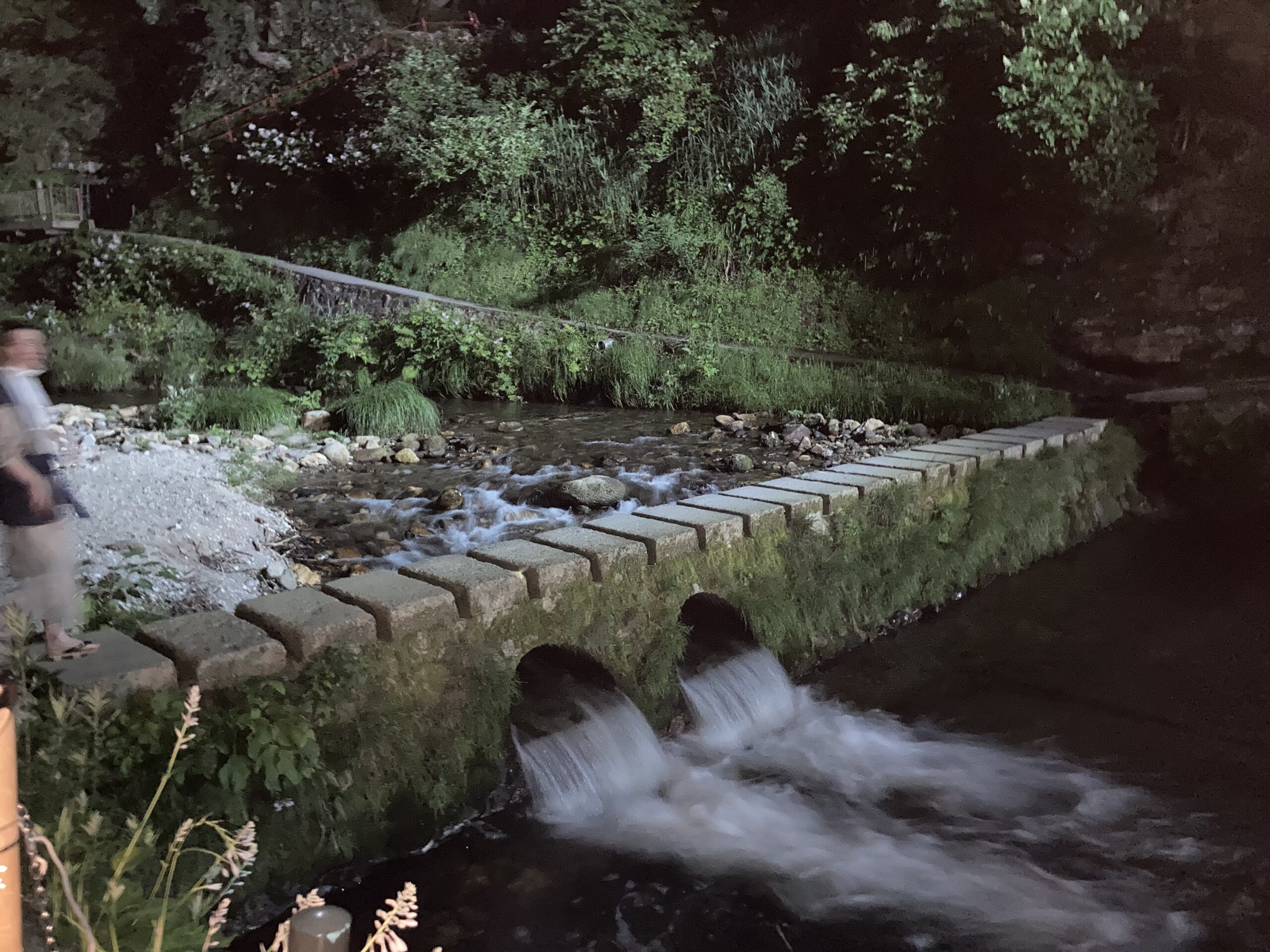 ガス灯が設置されているので、火がともってからの景観が風情があり、、よく大正ロマンを感じるとか書かれていますが、古き日本の美しい街という感じになるわけでずっと見てられます。この時期夜は涼しいのもあり、散歩するのも楽しみ。ただ、夜は騒がず楽しみましょうね。。