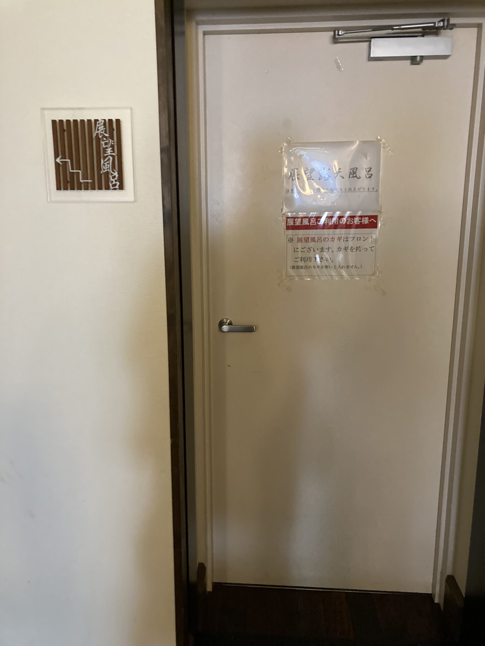 待ちに待った露天風呂へ行きます。夏しか入れない展望露天風呂に入りたくて再びきたものです。朝ごはん前に予約をとったので、向かいます。ここは鍵があるので、フロントで前の方が終わったのを確認して鍵を受取ります。入り終わったあともフロントへ鍵を戻すシステムです。