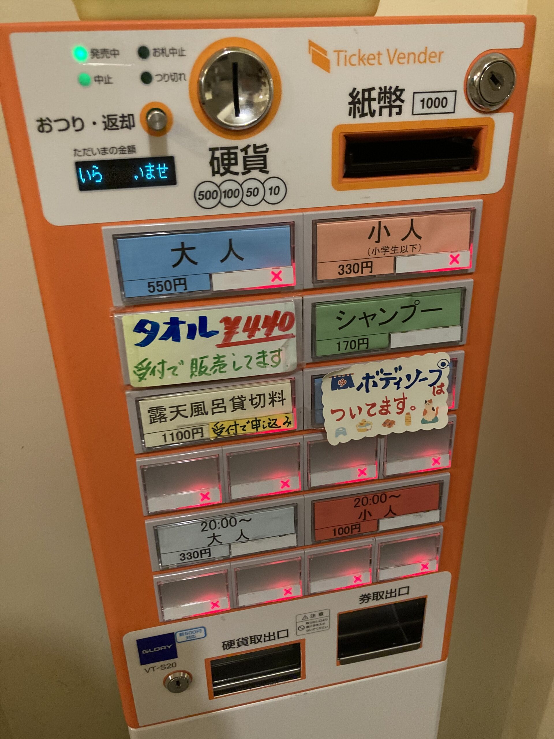 宿からGoogleに誘導してもらって歩いて5,6分で到着。すごい大きい建物です。通常大人は550円ですが20時以降は330円で入れます。洗い場もあります。天井がものすごく広くて、実は2階建てとかだった建物をぶち抜いたんだとか。解放感があるのと硫黄の匂いが十万していて最高。いい湯でした。