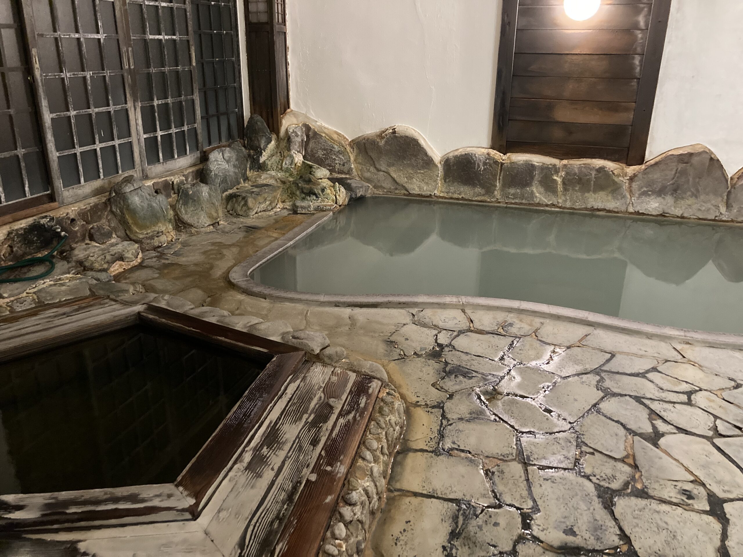 館内のお湯も楽しみます。内湯は男女それぞれ一つずつ。夜に入れ替えになります。「うなぎ湯」と呼ばれているように、少しぬるぬるしているため名づけられたそうです。泉質はアルカリ線。内湯も非常に良いお湯でお肌もしっとり、傷がなくなったんじゃないとか気のせいだとか。鳴子温泉は近くのエリアでいながら異なる泉質のお湯を楽しめます。贅沢ですね。