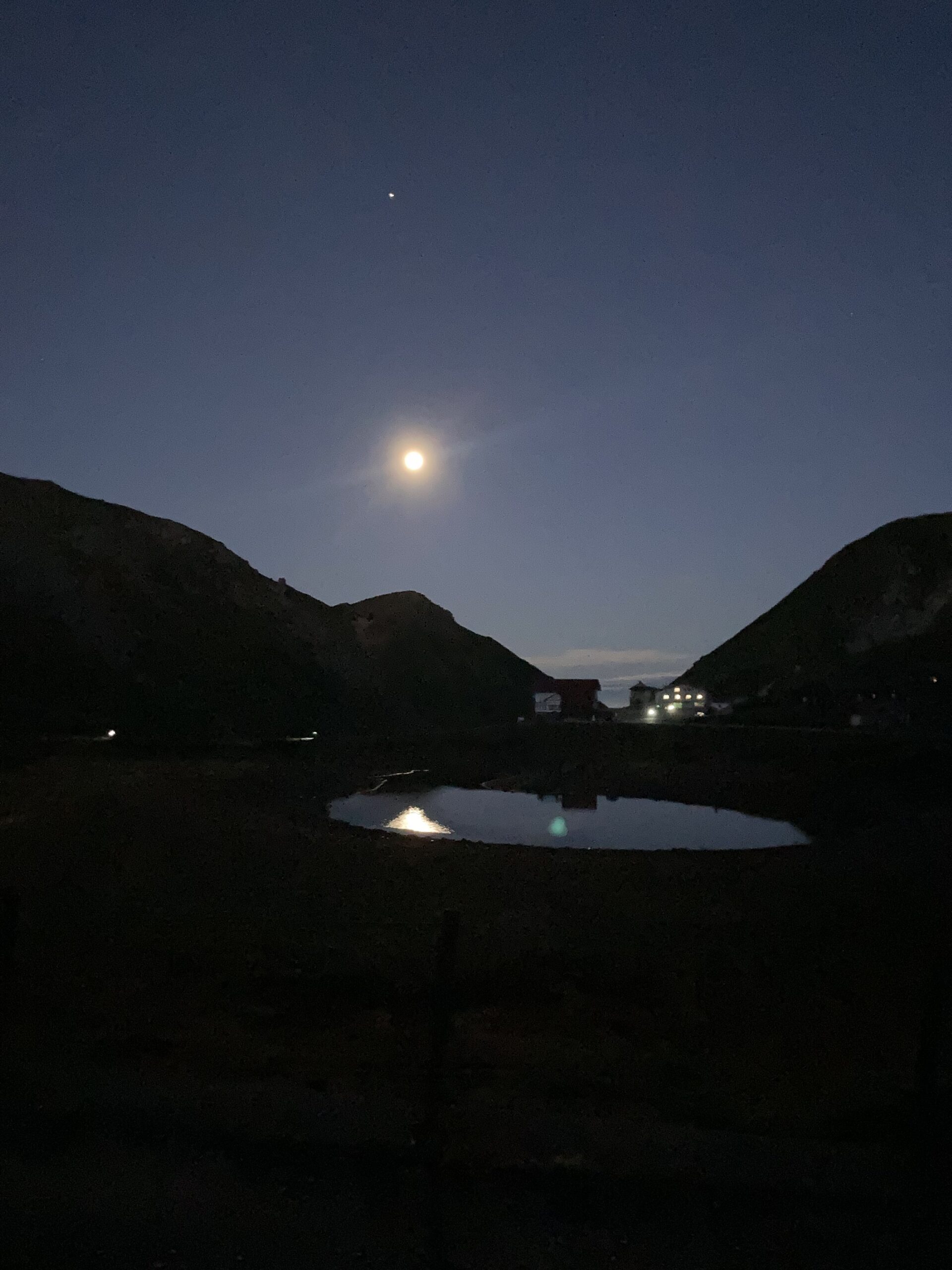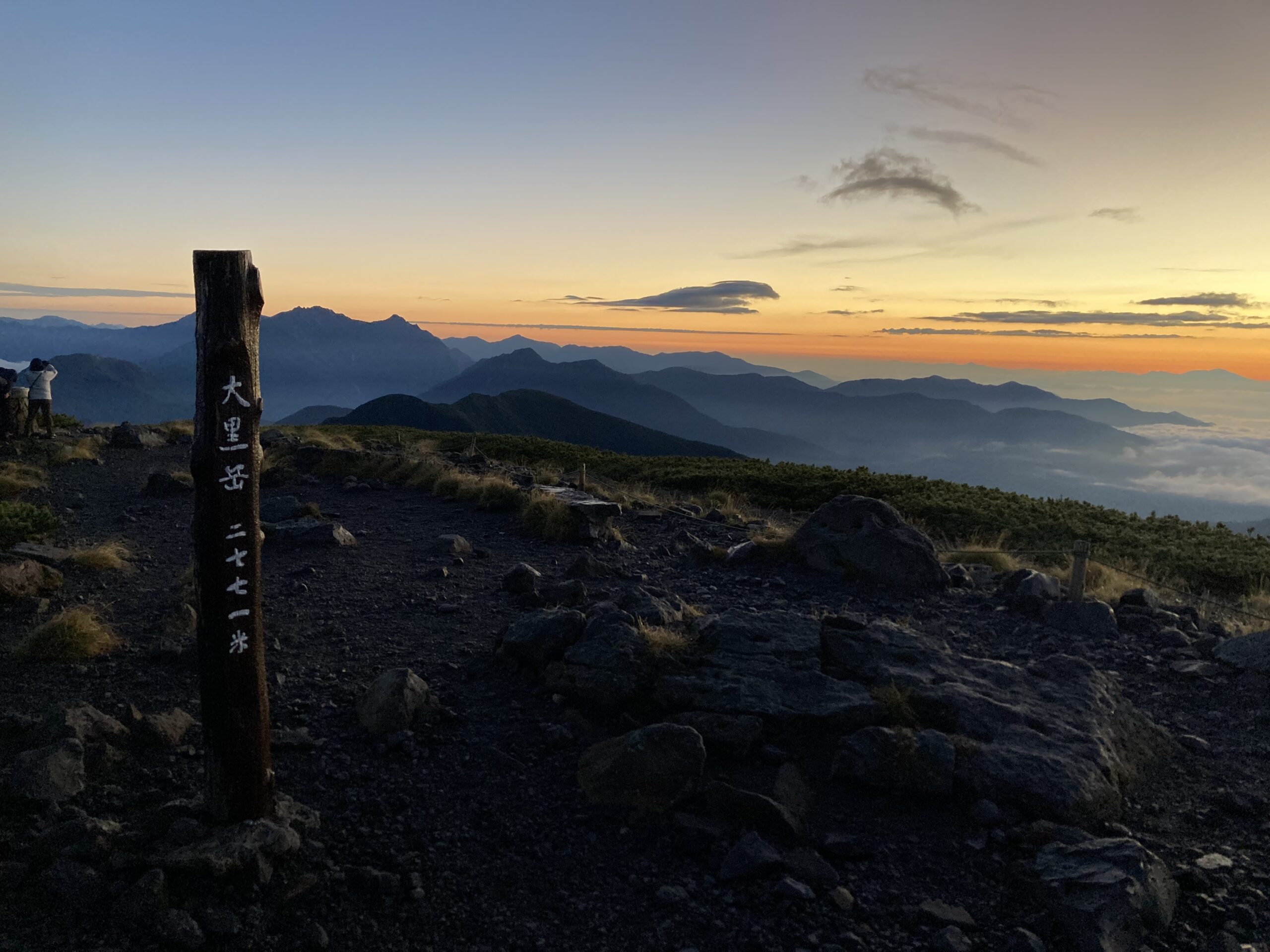 少し寒いけど、なんとか半袖でも少しなら過ごせそう。もう山では夜なので人はまばら。でもまだ登山している方々がちらほらいる。