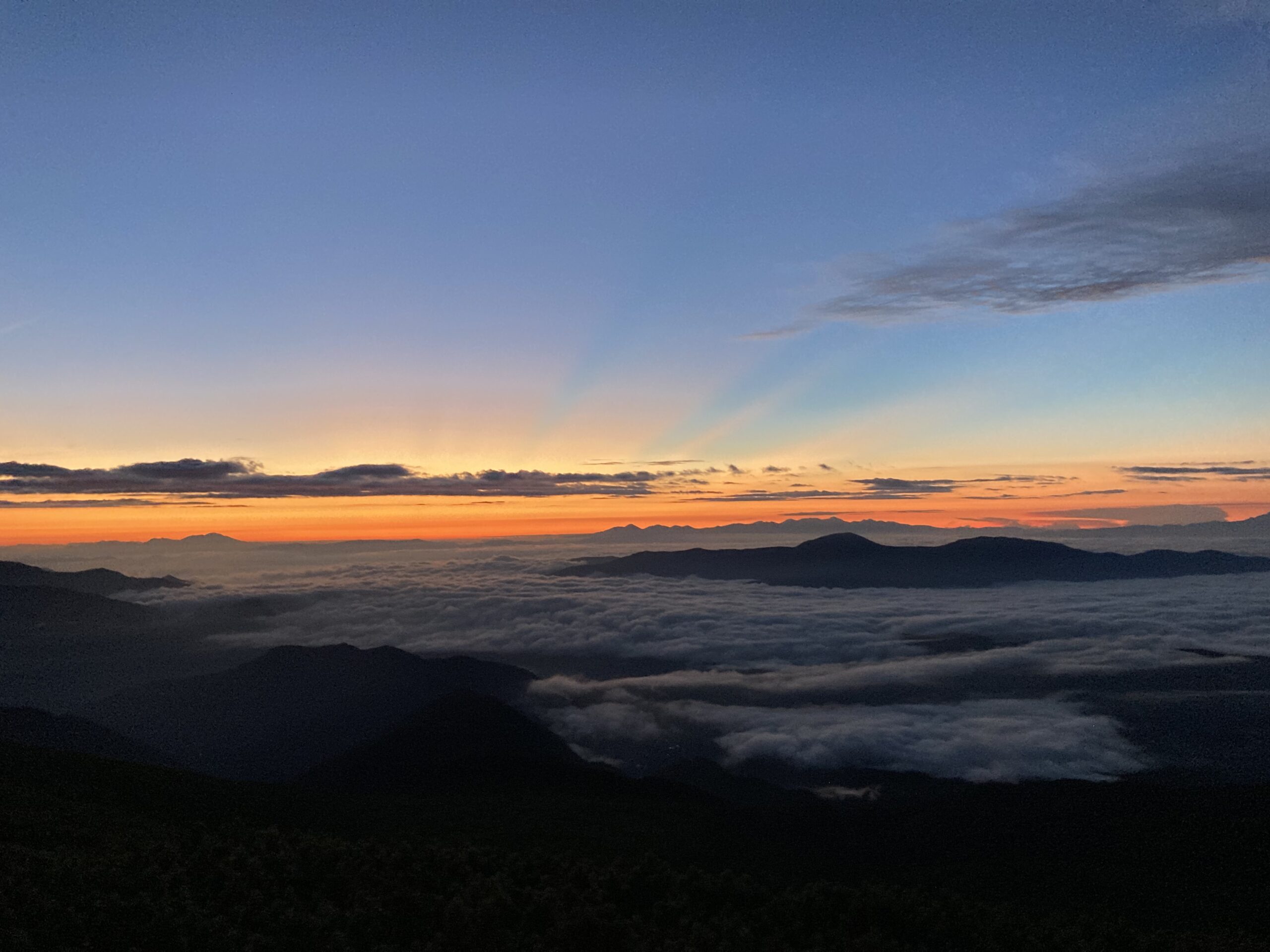 登ったころには日の出までの綺麗な空。日が出てからより、出る前が綺麗なんですね。