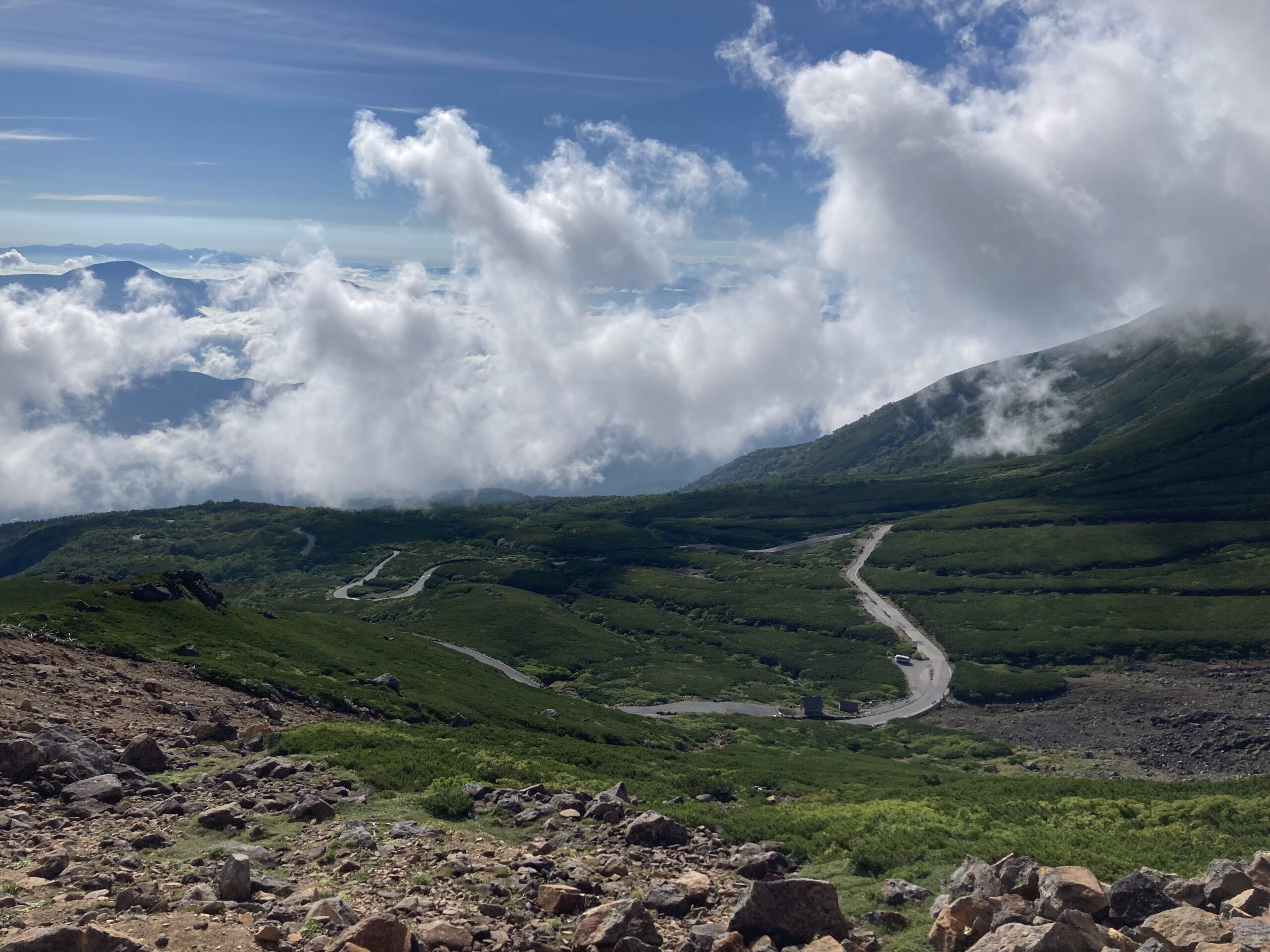 このルートはとにかく山道の蛇行が続きます。心地よい揺れで眠気に襲われるけど気づくと絶景が・・もうこんな中で過ごせるのかと思うとわくわくが止まらないわけです。
