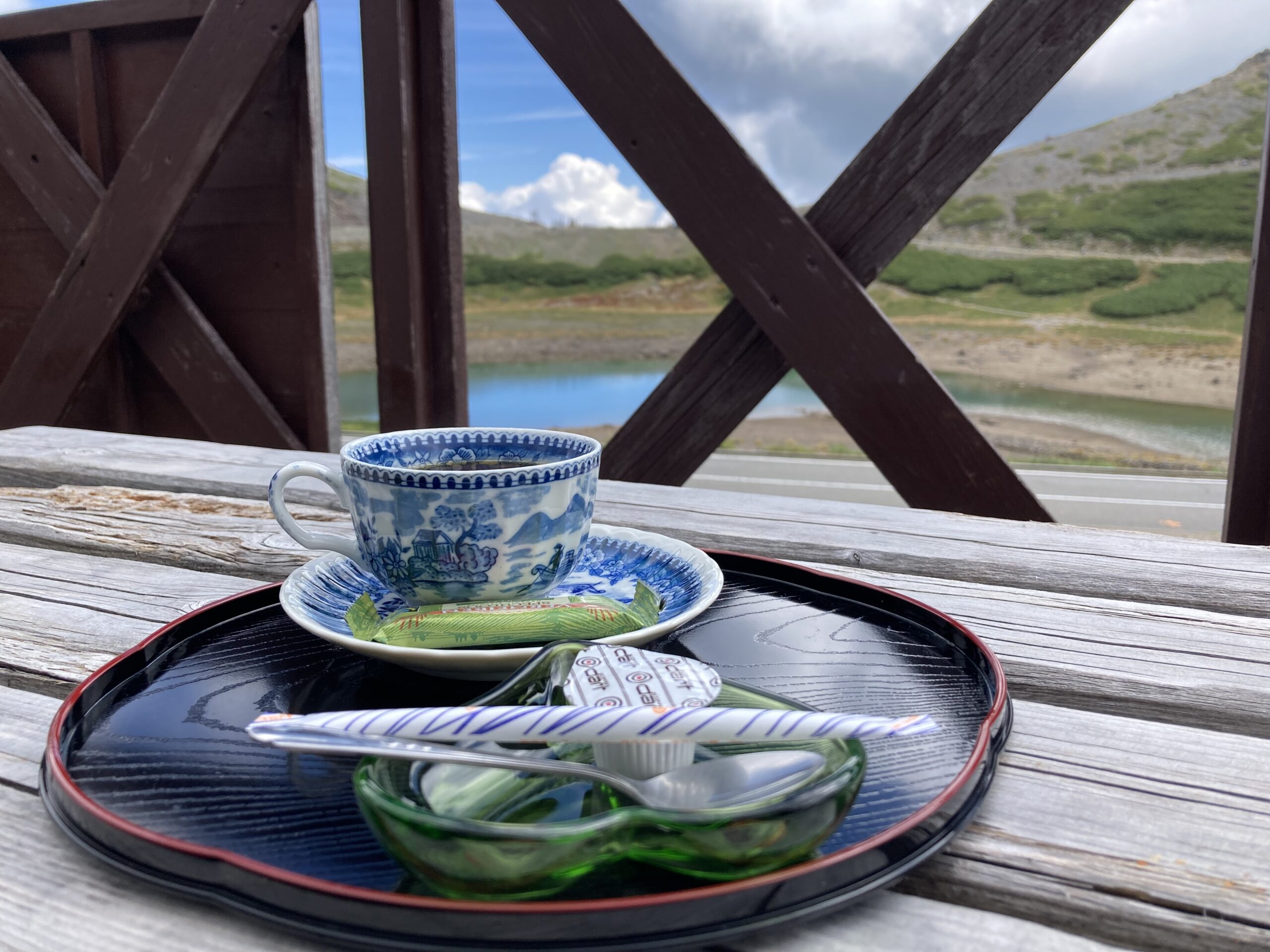 12時過ぎくらいに山荘へ戻ってきて預けた荷物整理しつつ、コーヒーを頂きました。