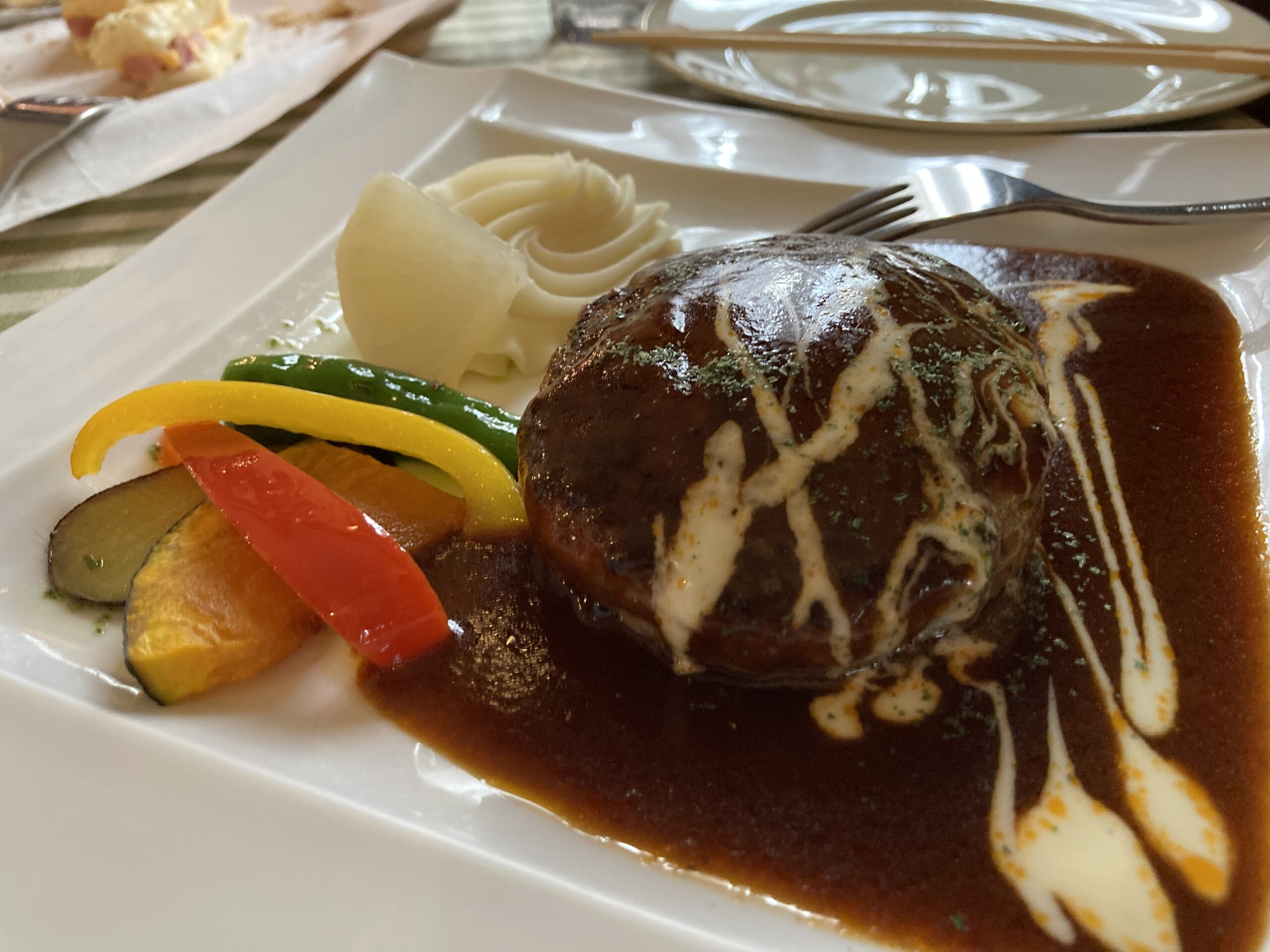 お腹すいていなかったけど見たらとてもおいしそうで、少しパンを食べたり、一口食べたンバーグはおいしかった。