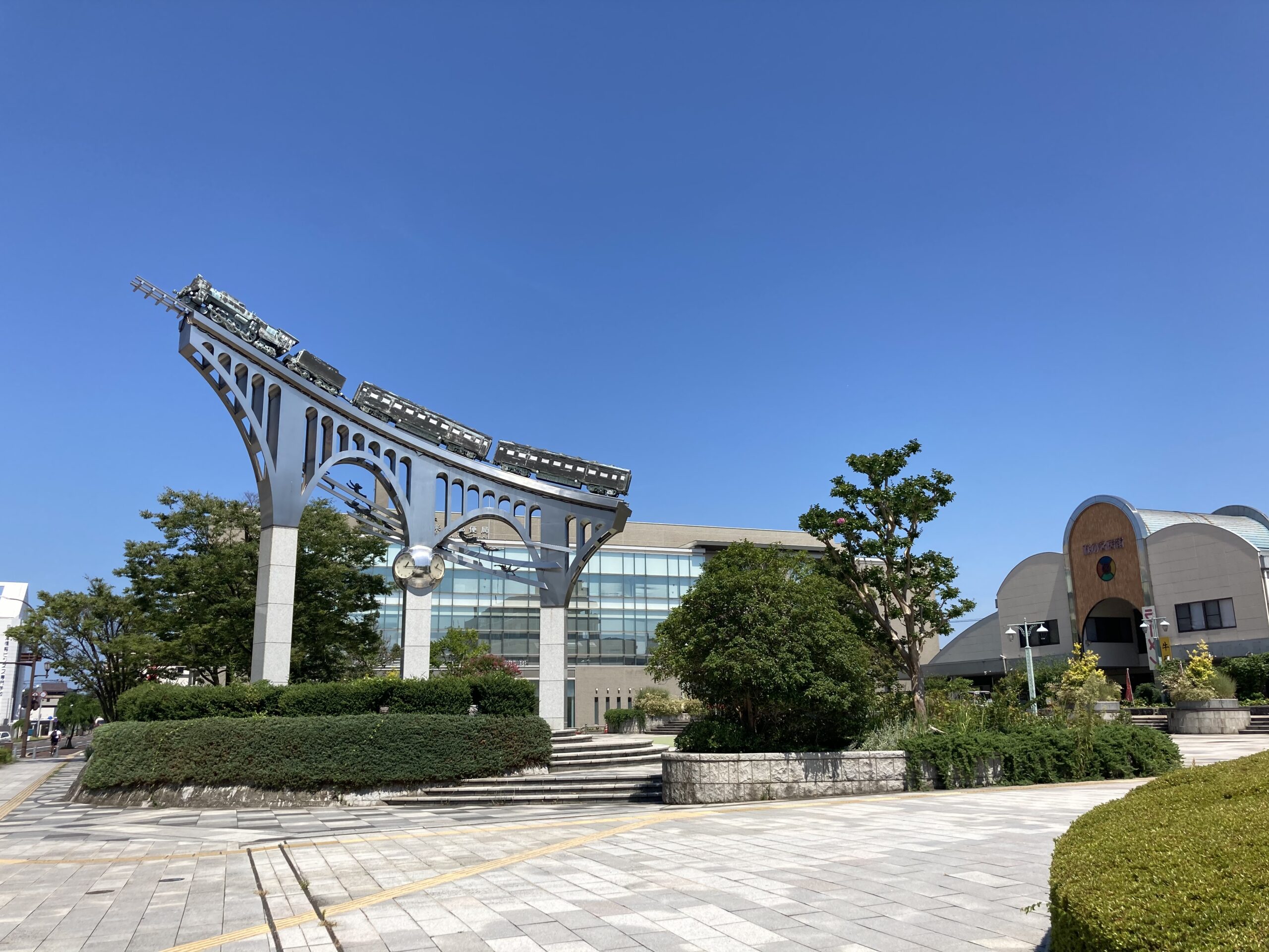 米子は山陰鉄道の発祥地の象徴らしく、こんな立派なモニュメントが。銀河鉄道999みたい。