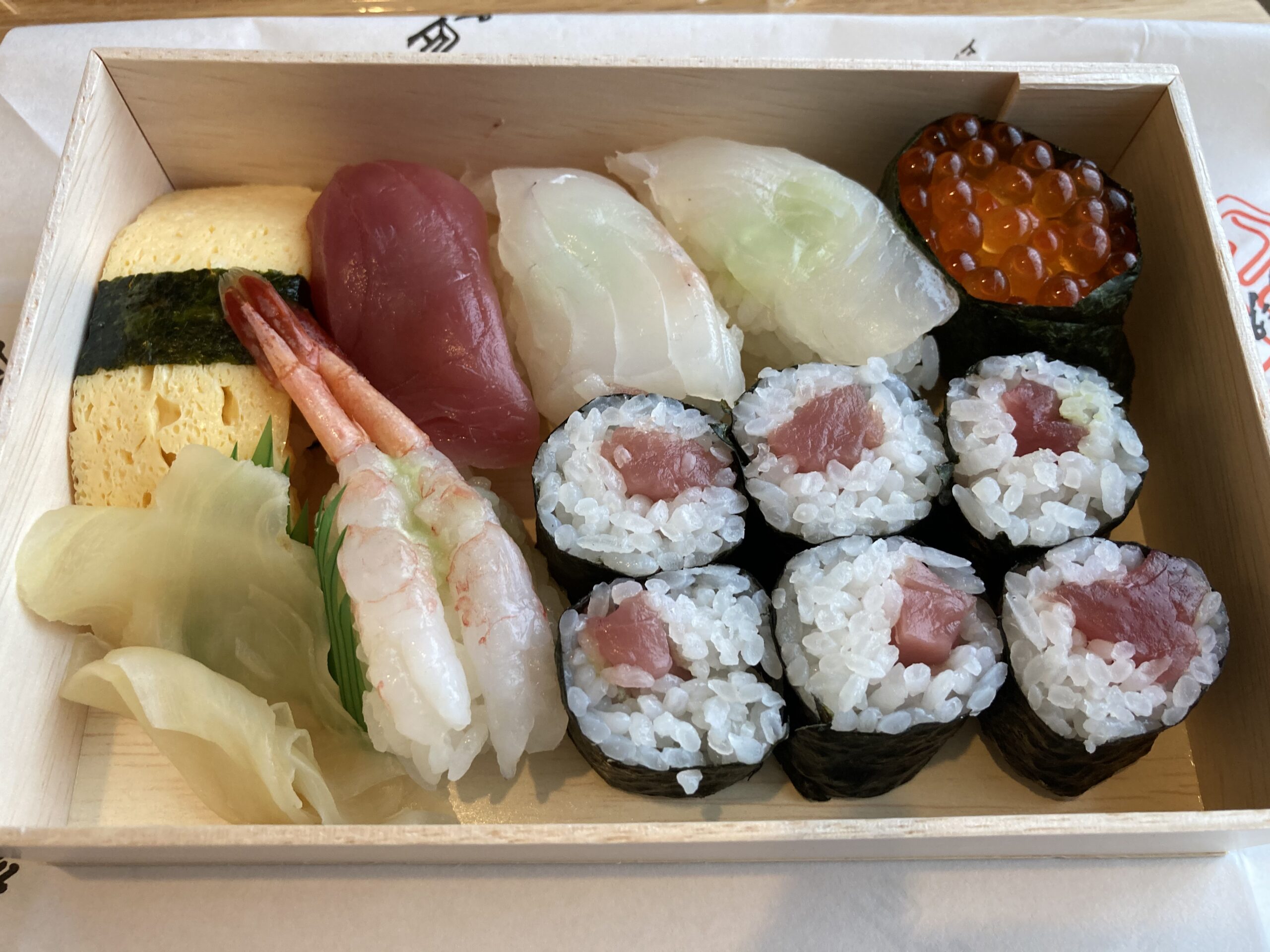 ふらふらしていたら、駅ビルのお寿司やさんで握りたてをテイクアウトできたので