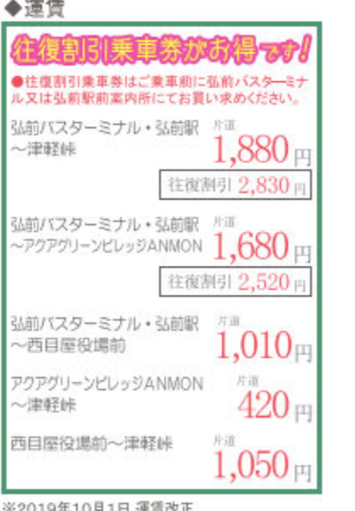 弘前駅とアクアグリーンビレッジ 往復バスチケットを