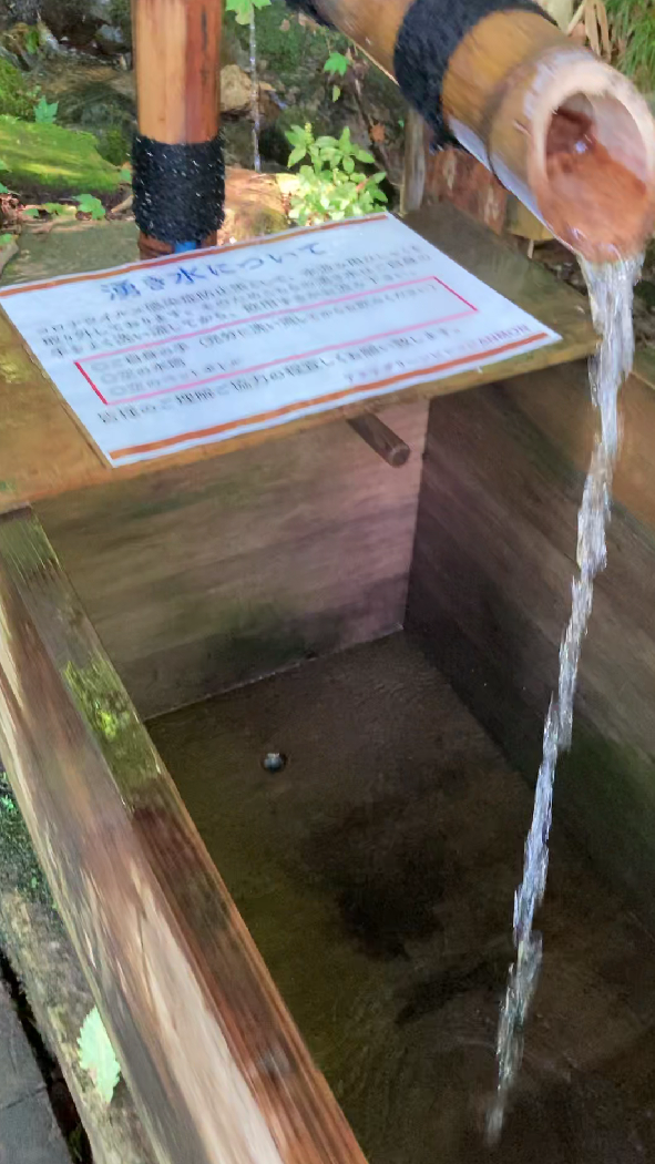 入口から、湧き水スポットがあって、自由に飲むことが出来る。(中にもいくつか原始的なものあり)